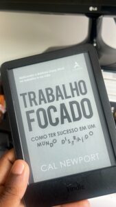 Com esses objetivos em mente, todo vídeo que eu buscava sobre o assunto, quase todos os textos que eu lia sobre o assunto indicavam o autor Cal Newport. Eu já tinha alguns livros dele adicionados à minha estante do Skoob, mas o livro Deep Work ou Trabalho Focado não estava na minha lista, talvez por ser um livro de 2016, não sei.